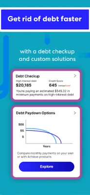 Simple tools to visualize, track, and improve your debt position, and connections to Achieve products that may be able to get you out of debt faster, simpler, and with less anxiety.
