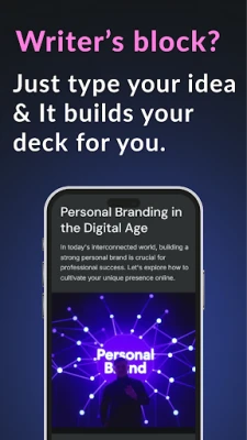 Just enter your topic or notes and watch AI transform your ideas into a ready-to-share deck.