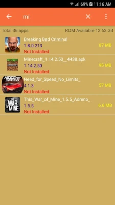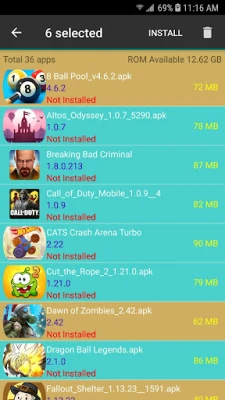 • Show correct apk file (Skip corrupt file) • Scan apk files from External Storage and SD Card • Display total apk files • Batch install apk files by single click • Batch delete apk files from External Storage and SD Card • Search apk file by name • Apk file installed status • Display free space memory
