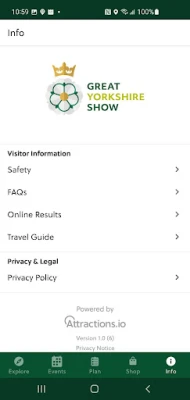 The Great Yorkshire Show app gives you the opportunity to find out what's on each day, navigate your way across the showground and see what offers are available on the day.