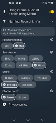 Internal Audio Recorder - Voice Recorder is an easy-to-use audio/sound recording and voice app that helps record audio of notes, music, lessons and so on. It provides pleasantly simple recording interface.
