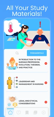 Nursing Fundamentals Study Guide: This app covers all the essential topics in nursing fundamentals, helping you build a strong foundation in nursing knowledge. Learn basic nursing concepts, patient care techniques, and clinical skills necessary for success in nursing exams and real-world practice.