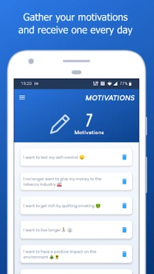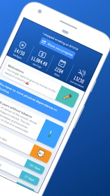 • Motivating statistics – Track money saved, cigarettes not smoked, life expectancy gained, and days tobacco-free.