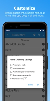 - Spice up the name choosing experience with the app's customizable presentation mode