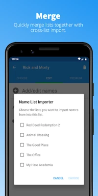 - Import name lists into one another to quickly add many names at once