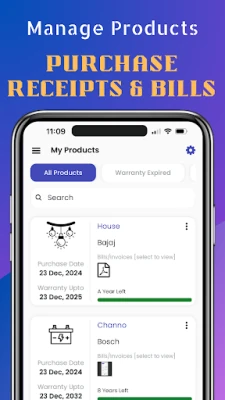 1. Conveniently manage all your domestic items warranty or purchase receipt in a single space