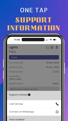 Warranty Book App provides customer care or support numbers of major brands so you can easily connect with them, log your complaints or service requests.